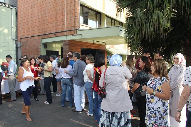 CCBT organizou, com Colégio Internacional Belo Futuro e ASEBT, confraternização pela festividade nacional turca para turcos residentes em São Paulo e brasileiros que têm alguma ligação com a Turquia. Mais de 200 pessoas estiveram no programa que durou a tarde inteira do dia 25 de outubro de 2012. Foram oferecidos muitos pratos típicos turcos e doces turcos, além de famoso kebaps (tipos de churrasco turco) para os participantes. Também foi apresentado um recital de música turca por Kadir Çavdarli, que soprou Ney e pelo Prof. Leonardo Jeszensky que tocou Ud. O Prof. Leonardo deu um curso inédito no Brasil, Sistema da Música Clássica Turco-Otomana, na sede do CCBT em São Paulo. Confira as fotos. |